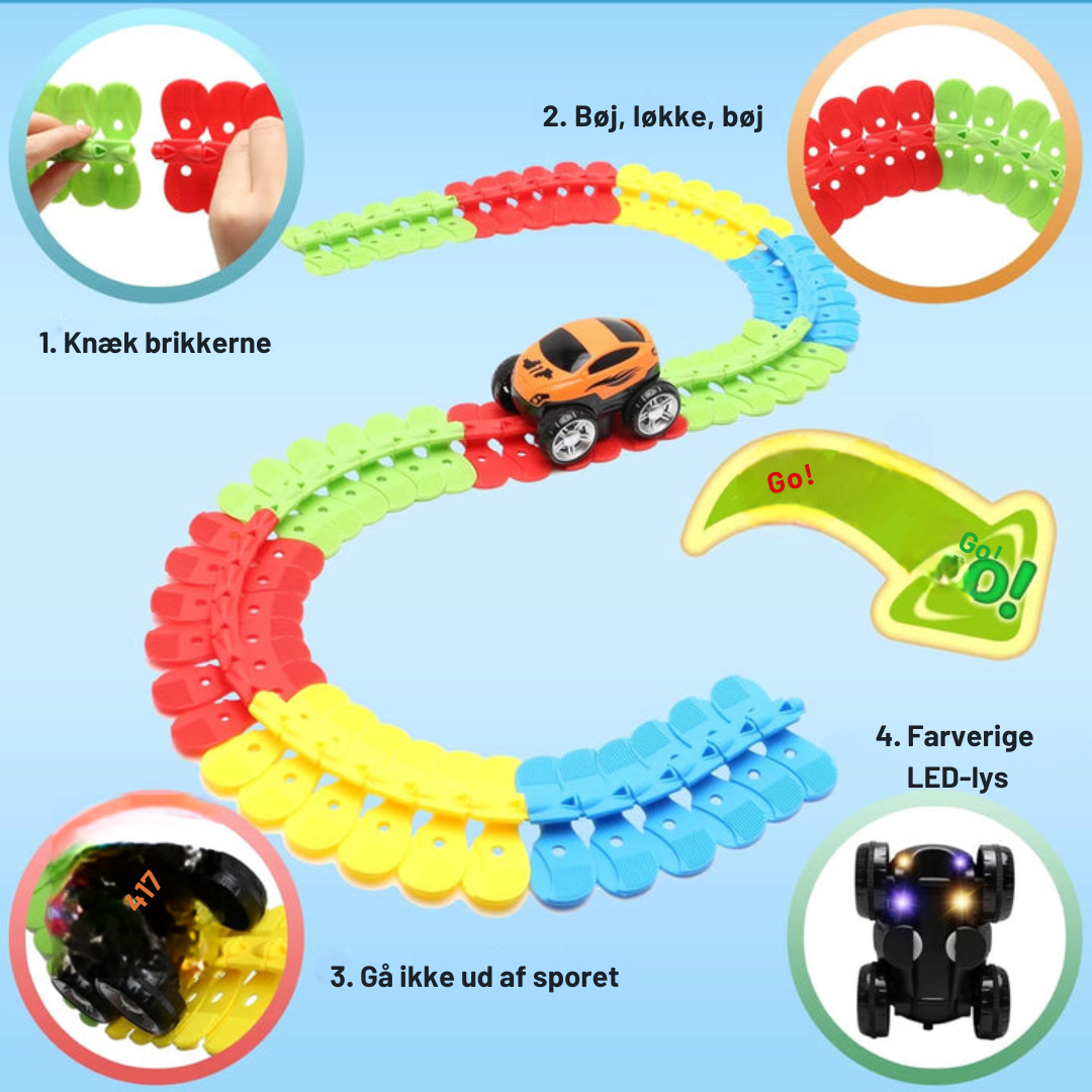 - Indeholder: (92 eller 184) sporstykker, (2) bilskaller, (1) racerbiler