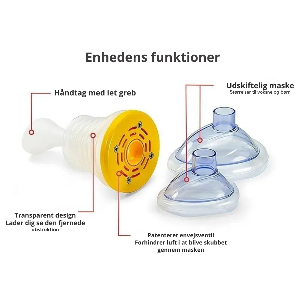 Når panikken bryder ud, tæller kun én ting: enkel og hurtig handling. ClearAir™ er designet, så alle voksne kan bruge det med det samme. Et kraftigt sug er nok til at frigøre luftvejene – uden komplicerede trin eller lang forberedelse.