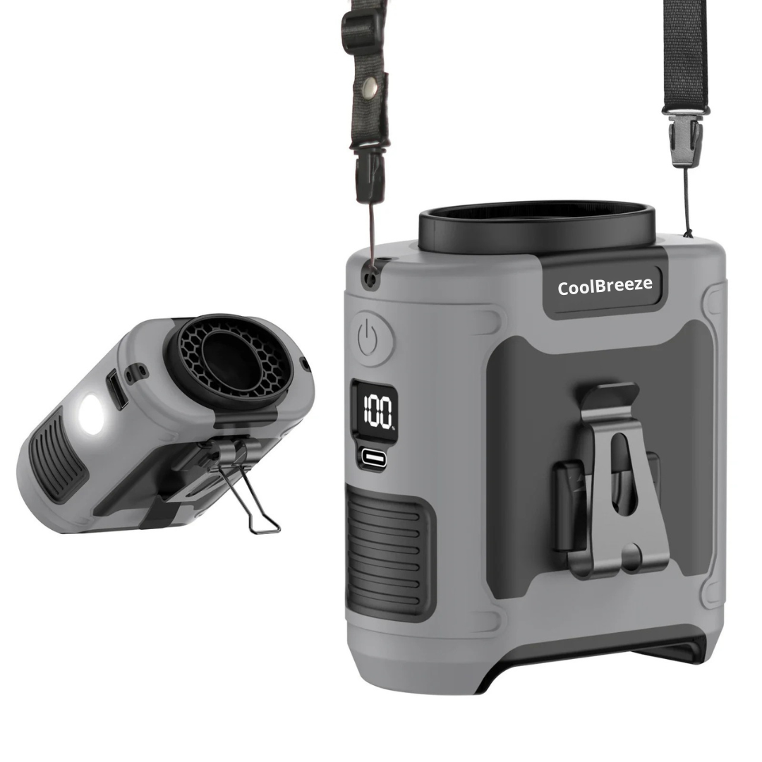 - 🎒 Multifunktionelt design – brug den på hoften, om halsen, som bordventilator eller powerbank.