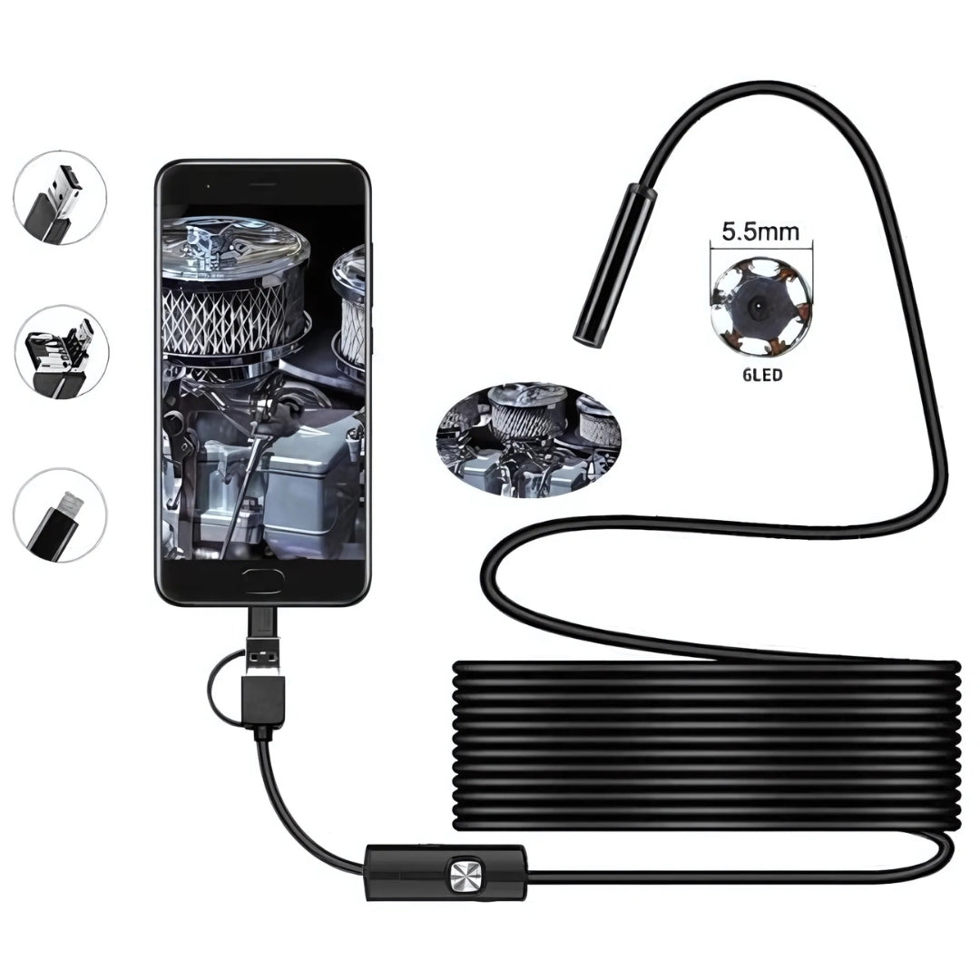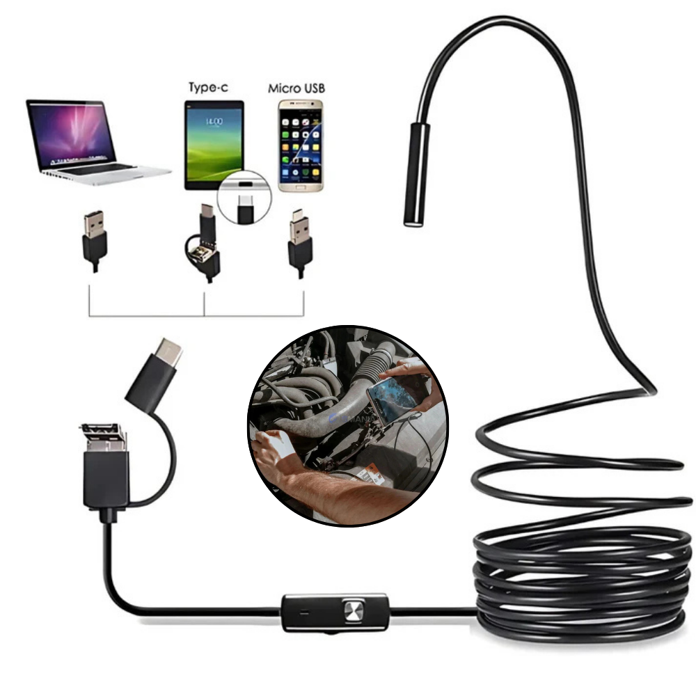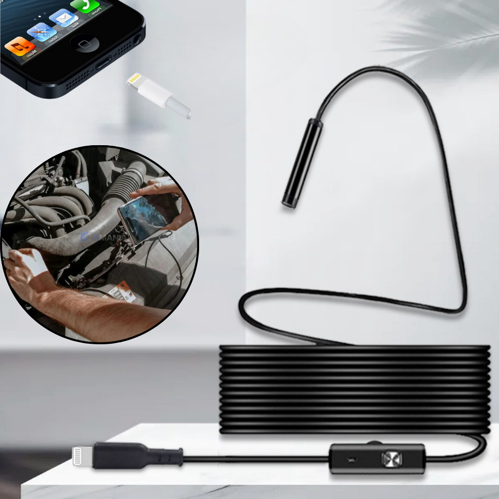 Har du svært ved at inspicere svært tilgængelige områder? FlexiScope er løsningen! Dette alsidige endoskop fungerer problemfrit med din telefon, tablet, computer eller bærbare computer og leverer klare billeder selv under mørke eller våde forhold. Takket være det fleksible kabel og den indbyggede LED-belysning kan du nemt inspicere skjulte områder som rørledninger, motorer, ventilationskanaler og meget mere.
