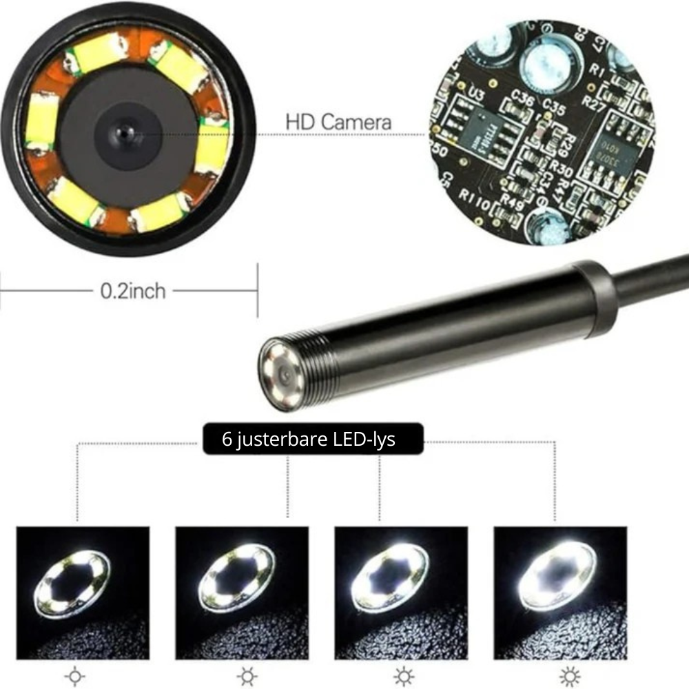 Med dette vandtætte endoskop med LED-belysning kan du nemt nå svært tilgængelige områder. Ideelt til hjemmearbejde, bilvedligeholdelse og tekniske inspektioner. Få præcision og bekvemmelighed derhjemme!