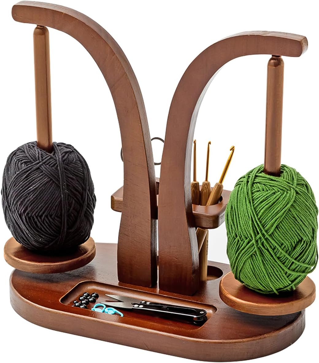 Dobbeltspindel: Uldholderne har to spindler til opbevaring af garnnøgler i forskellige farver, så du kan bruge begge garnnøgler på samme tid og skifte garn mindre ofte.