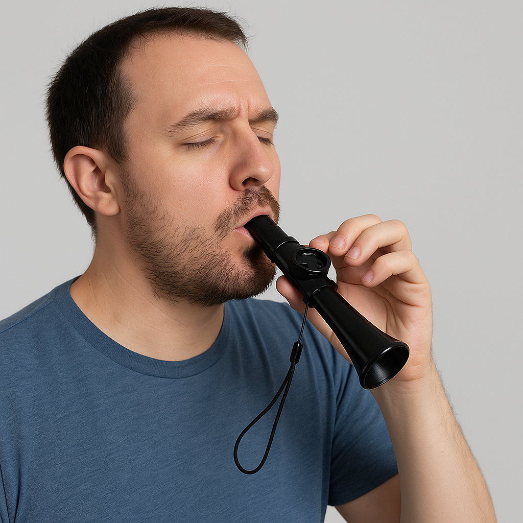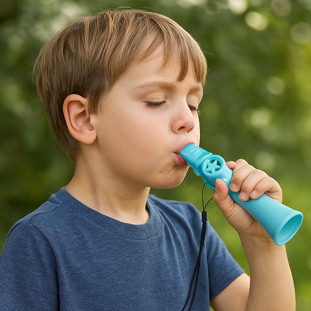 Bare syng, nyn eller tal ind i den – og oplev hvordan lyden bliver forstærket og forvandlet til en sjov, buzzy tone, der minder om et mix mellem en trompet og en synthesizer!