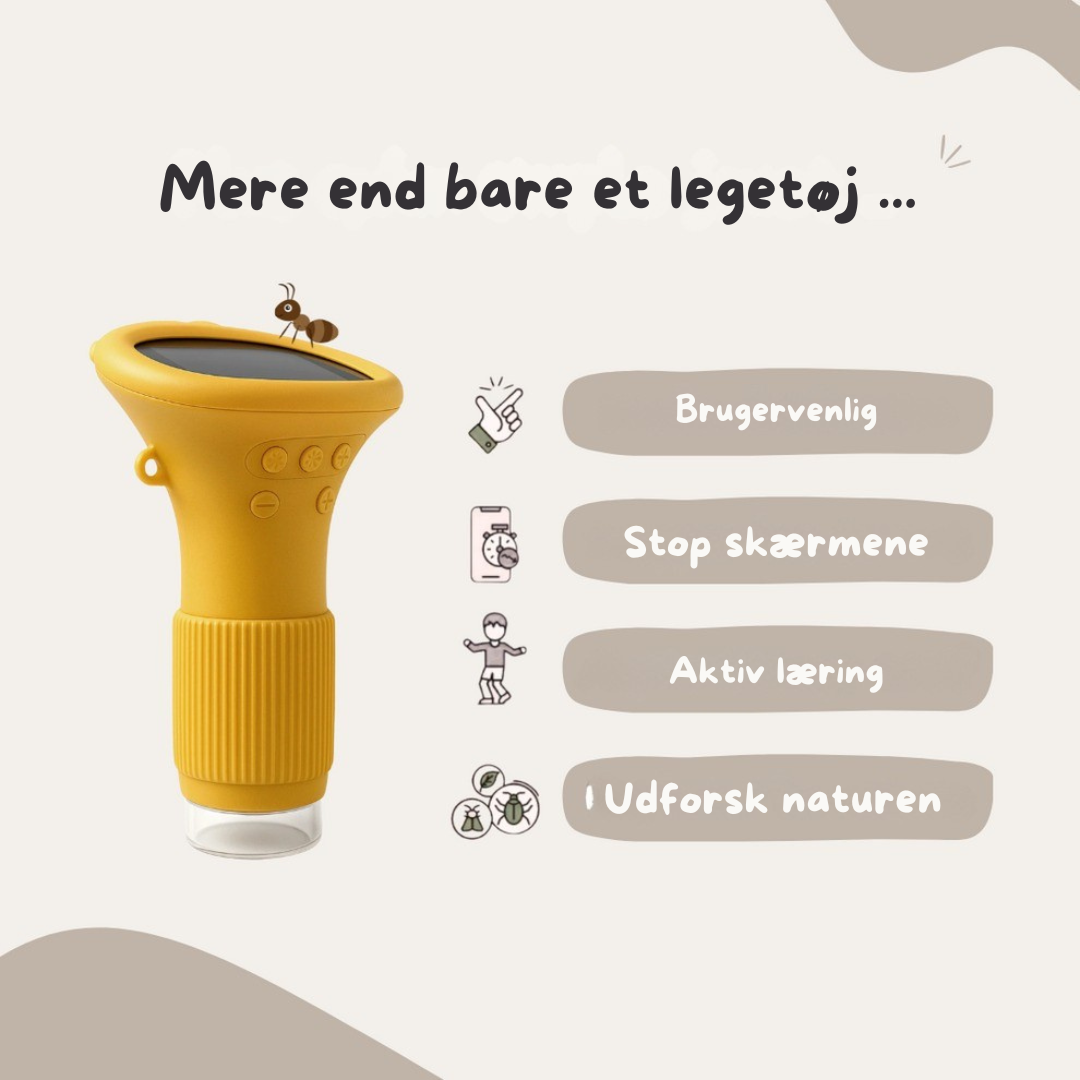 Med Kidiscope™ bliver naturen klasseværelset, og hver vandretur forvandles til en ekspedition. Det robuste design i ABS-plast sikrer, at nysgerrige små hænder kan undersøge alt fra barkrevner til insekter – helt op til 1000× forstørrelse!