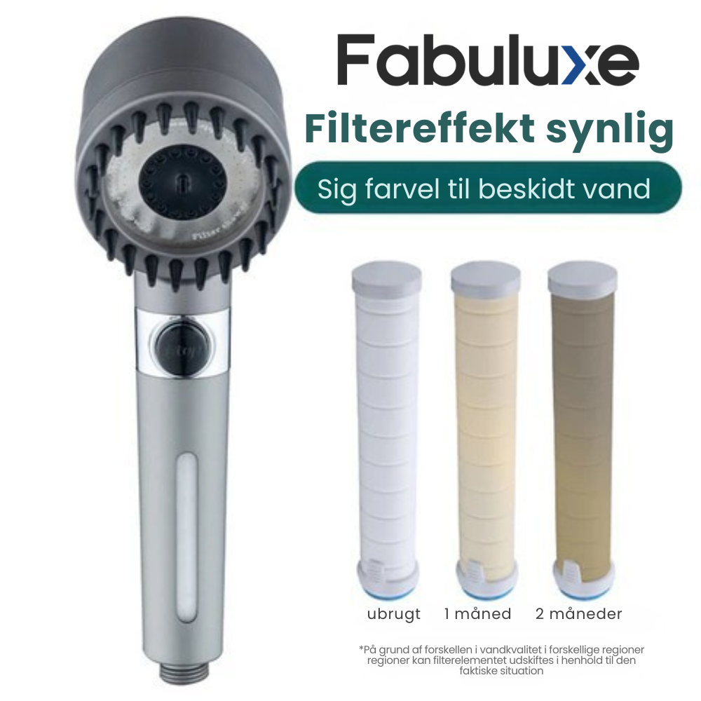 Den har et synligt indbygget filter, der fjerner 99 % klorrester, vandrust og andre urenheder.