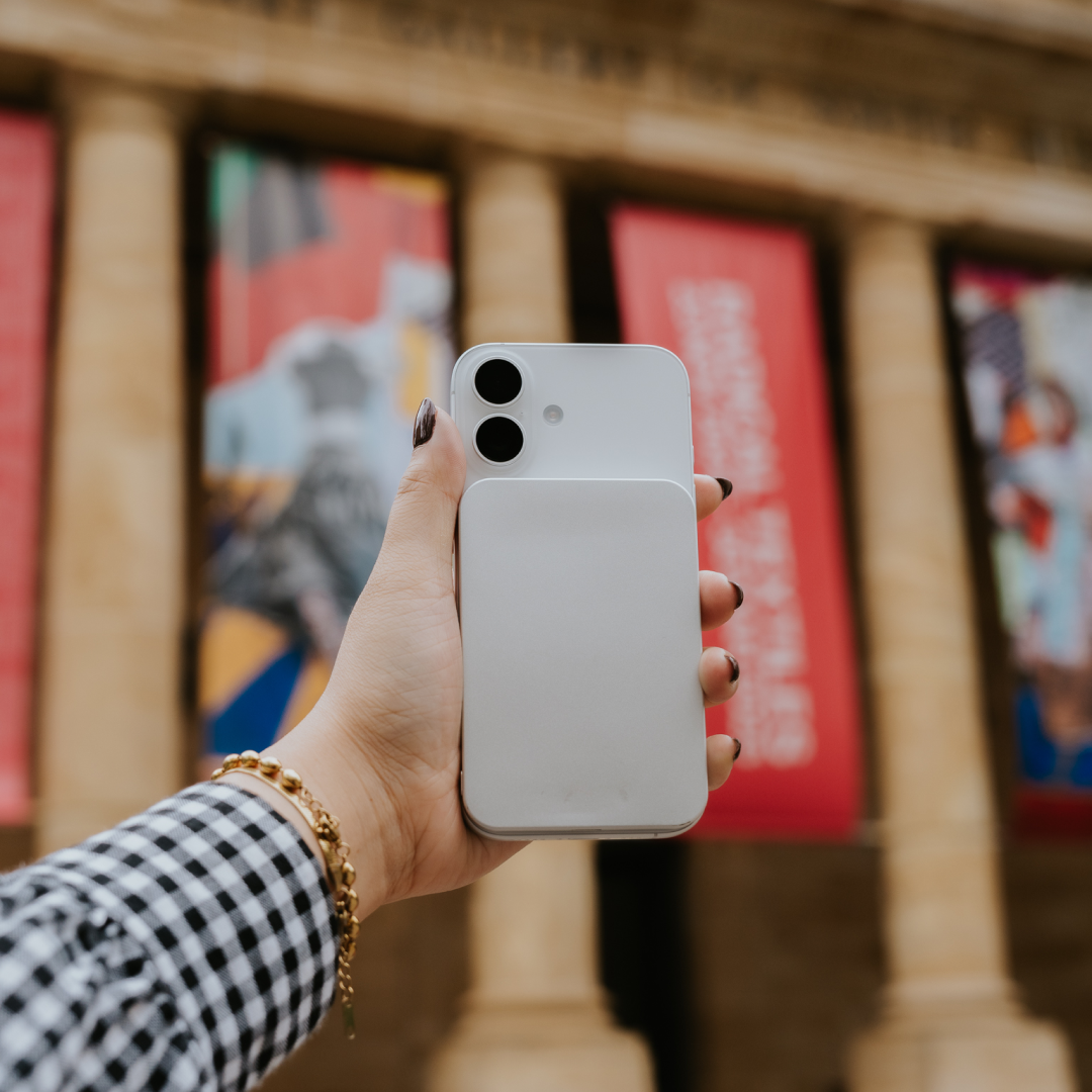 Denne ultratynde powerbank på 5000 mAh klikkes magnetisk fast på bagsiden af din iPhone. Ingen kabler, intet besvær. Bare ren, trådløs frihed. Uanset hvor du er.