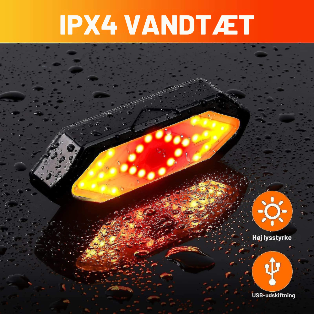 Med den trådløse fjernbetjening på styret kan du aktivere blinklyset uden at slippe hænderne. 32 ultra-klare LED-lys sørger for, at bilister og fodgængere altid ser dig – både dag og nat.