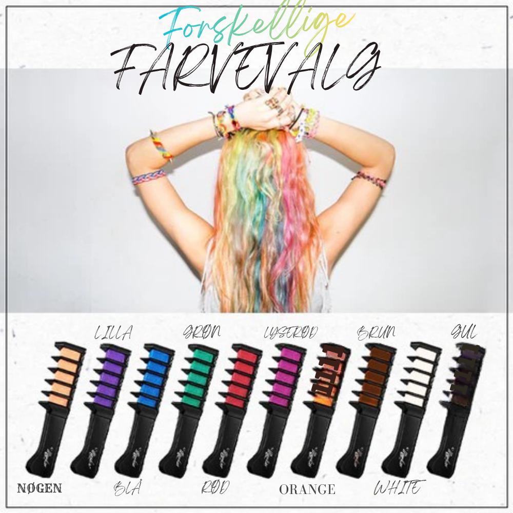 Hver boks indeholder 10 farvekamme i forskellige nuancer, fra pastel til neon. Du skal bare kamme, style og nyde – farven sætter sig øjeblikkeligt og vaskes nemt ud igen.