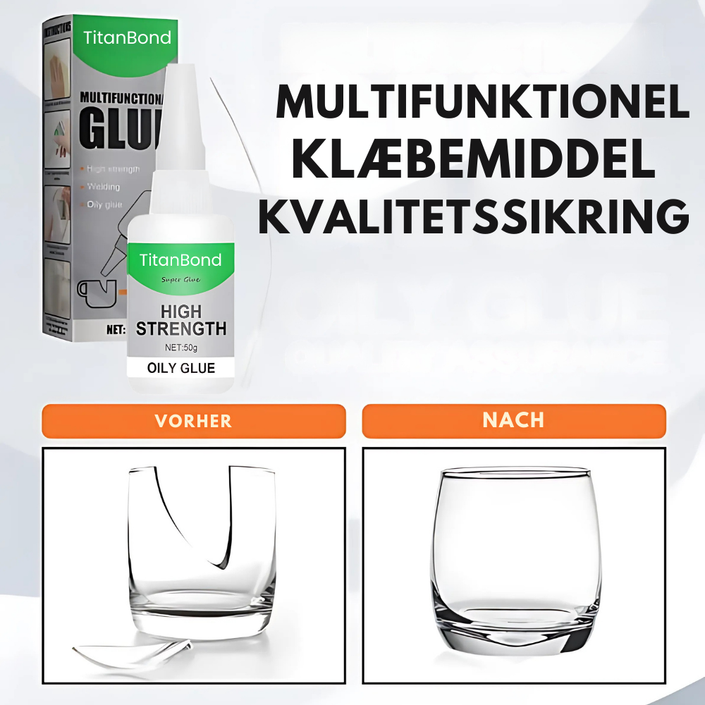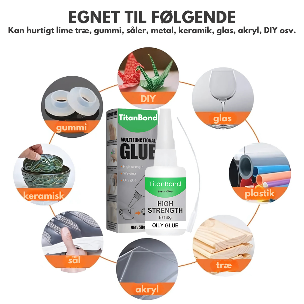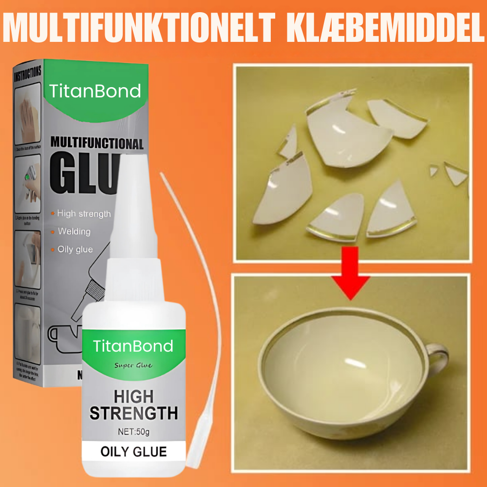 Knækkede genstande behøver ikke at blive smidt ud. Med TitanBond™ kan du reparere metal, træ, plastik, glas og keramik på få sekunder. Den skaber en stærk, fleksibel binding, der holder selv under de mest krævende forhold.