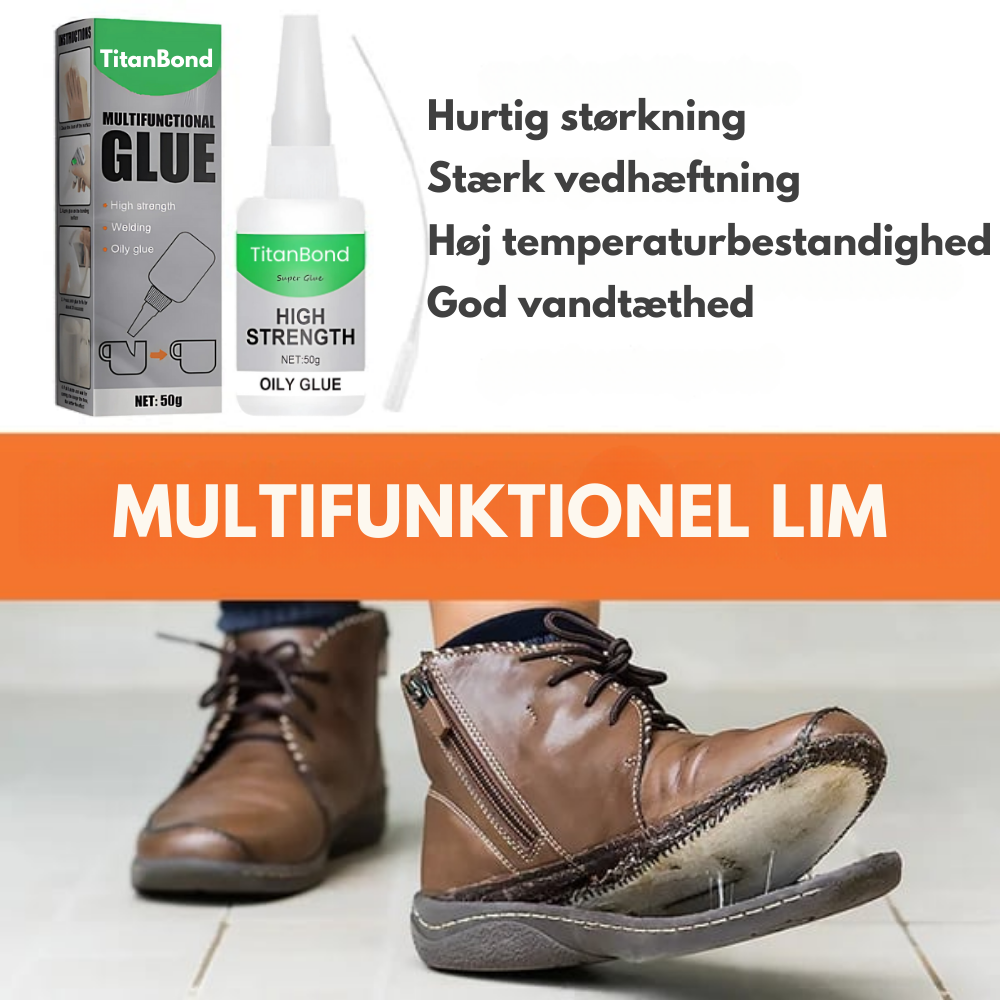 TitanBond™ har en unik olie-baseret formel, som gør den perfekt til læder, stof og andre bløde materialer, hvor normal superlim knækker. Den er samtidig så kraftig, at den uden problemer kan samle tunge og hårde materialer.