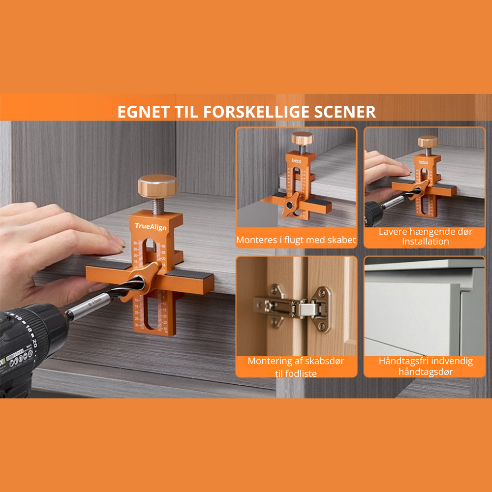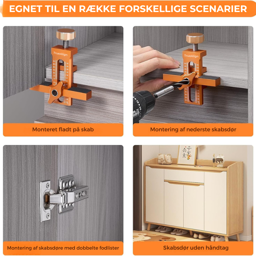 Du vil mærke forskellen ved første brug. Døre flugter perfekt, hængsler klikker præcist, og hvert projekt får et professionelt finish. TrueAlign™ gør det nemt for både gør-det-selv folk og håndværkere at arbejde hurtigt, sikkert og uden stress.
