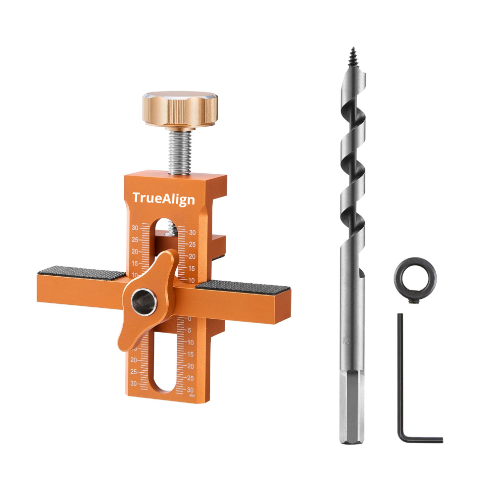 Med TrueAlign™ får du et justerbart måleværktøj, der sikrer millimeter-præcise hængsler og lige linjer hver eneste gang. Den indbyggede bore-guide holder boret stabilt, så du undgår skæve huller og flækket træ. Ét værktøj, én præcis pasform — hver gang.