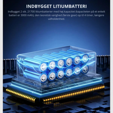 Det kraftige 3000 mAh-batteri giver langvarig brug, afhængigt af den indstillede hastighed.