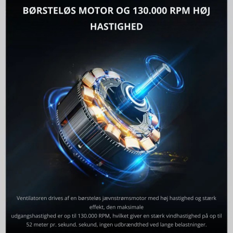 💨 Kraftigt lufttryk - Blæser ubesværet støv og snavs væk fra de mindste hjørner.