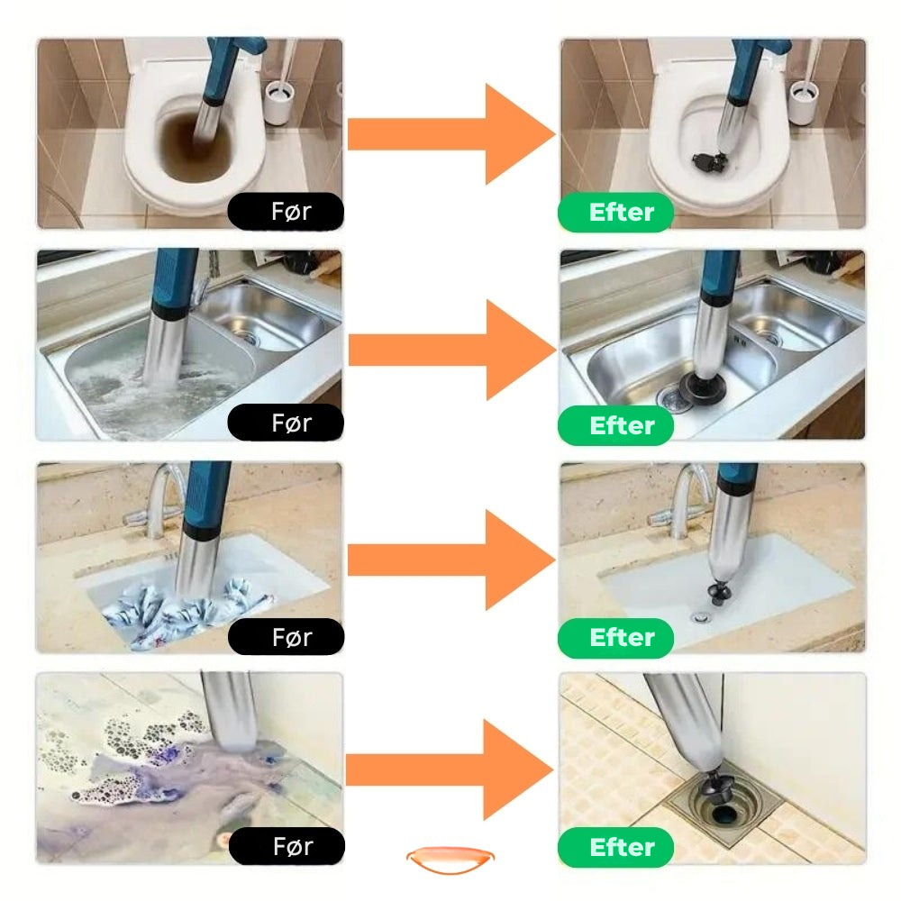 Sig farvel til genstridige blokeringer én gang for alle. Vores 2.0-version kombinerer kraft med komfort, så du ikke længere har brug for dyre VVS'ere!