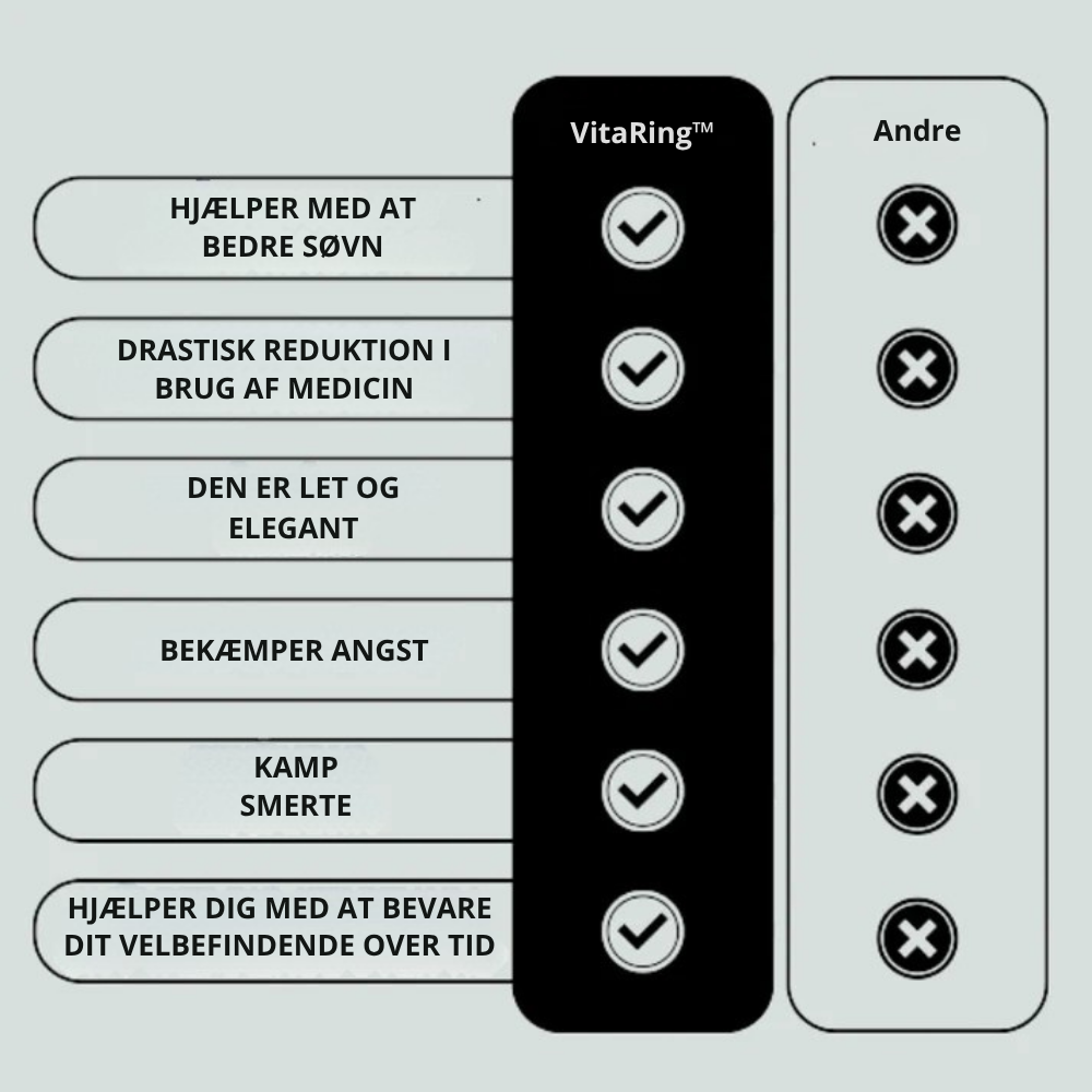 Uanset om du kæmper med stress, migræne eller søvnløse nætter, giver VitaRing™ hurtig, medicinfri lindring. Nyd en følelse af ro, afslapning og bedre velvære – uden afhængighed af medicin.