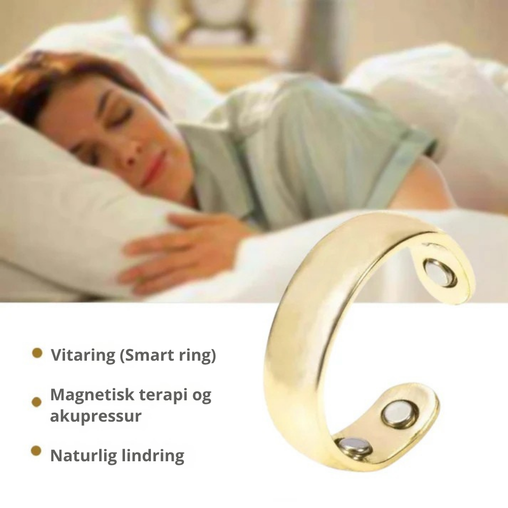 Sig hej til VitaRing™ – den første smarte ring, der kombinerer urtids akupressur med moderne magnetterapi – for en naturlig tilgang til dagligt velvære. Med et elegant og komfortabelt design er den din følgesvend for velvære, uanset hvor du er.