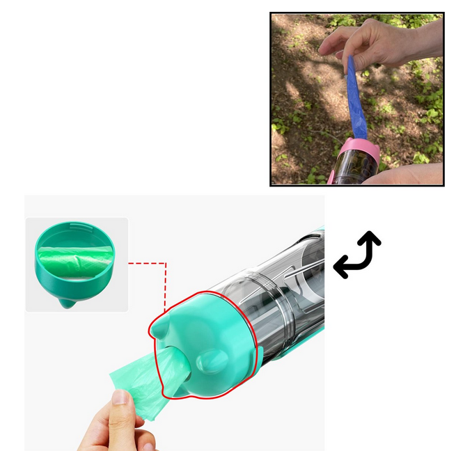 Bekymret for, at din hund bliver tørstig under udendørs aktiviteter? Din elskede firbenede ven vil aldrig mangle noget på vejen! Opgrader din hundeluftningsrutine med vores bærbare vandflaske, hvor du kan opbevare godbidder, affaldsposer og en affaldsskovl praktisk, mens du holder din pelsede ven hydreret på farten. Perfekt!